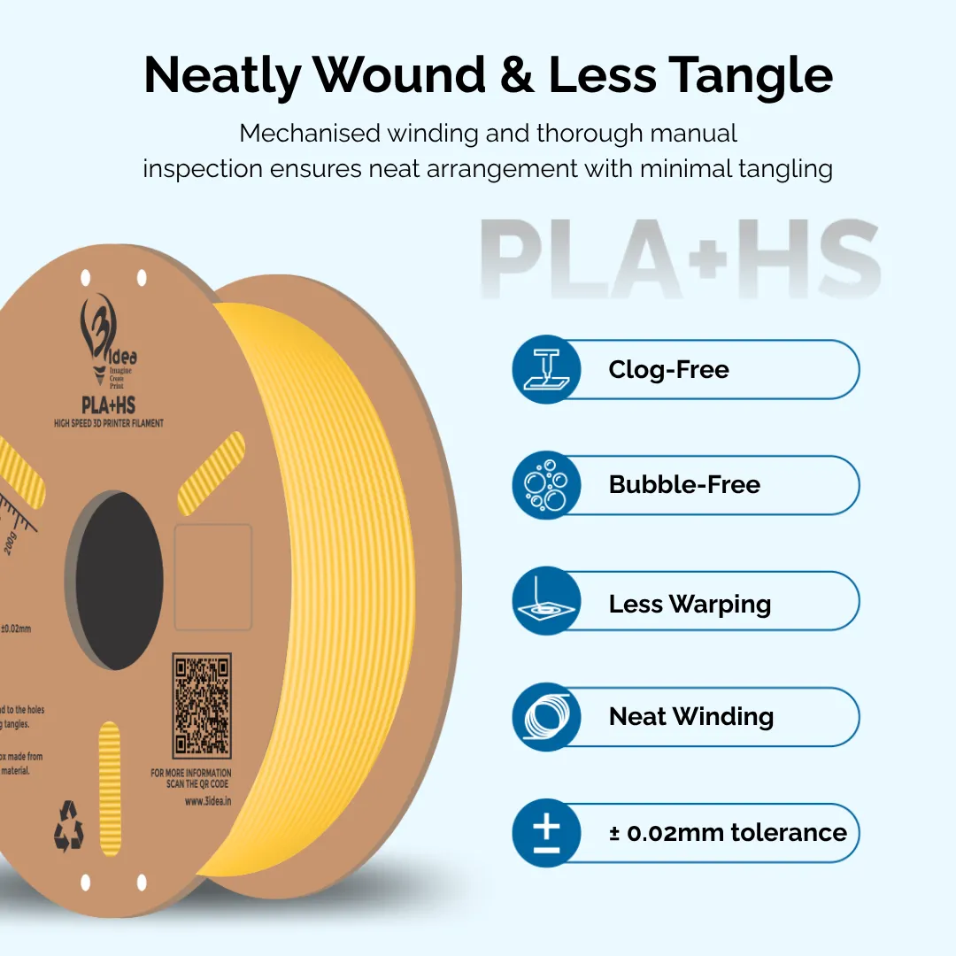 3Idea PLA+ HS Premium High Speed 3D Printing Filament, Yellow, 1.75mm, Net Weight-1kg